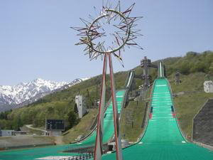1998年長野冬季オリンピックの会場となった「白馬ジャンプ競技場」や「八方尾根」へ車で15分。真夏でも雪の残っている「白馬大雪渓」や、少し足を伸ばして「黒四ダム」、いわさきちひろの「安曇野(あづみの)ちひろ美術館」、安曇野の「わさび田」、「碌山(ろくざん)美術館」、長野市の「善光寺」、「長野県立美術館 東山魁夷(ひがしやまかいい)館」や、「日本海」へは、いずれも車で1時間程度です。 |