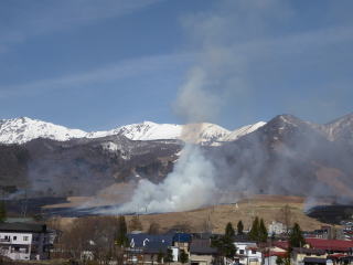 更新 4月15日(水) 18:10 原則として毎週水曜日更新![]() 4/15 8:20 当館前の桜(オオヤマザクラ)満開になりました。 11日(土)から昨日14日(火)まで晴れの天気が続き、 気温も上がりましたので、桜は急に花を開き始めました。 去年よりちょうど1週間早い花の咲き具合です。 ![]() 4/13 13:30 当館西側(スキー場側)のスイセンとカタクリ この日は桜が花を開き始めました。右端の2本が桜の木です。 ![]() 栂池第1駐車場土手のスイセン 4/13 白馬村落倉自然園のミズバショウ 4/14 春が一気にやってきた感じで、たくさんの花が咲き始めました。 優しい柔らかな新緑はこれからです。 リフト営業について 今日15日からゴンドラ終点上部の栂の森ゲレンデ つが第2ペアリフトが営業を始めました つが第2ペアリフトの運行について 詳細はこちらから 現在運行中のリフトは、ゴンドラリフトとハンの木高速ペアリフト、つが第2ペアリフト。 ロープウェイは週末運行します。 滑走できるのはゲレンデ上部の栂の森ゲレンデとハンの木高速ペアリフト沿いです。 往復ゴンドラリフトをご利用ください。 営業は5月6日までの予定ですが、雪がどの程度残るかはこれからの天候次第でしょうか? ゴールデンウィーク、ハンの木高速ペアリフト沿いだけでは困ったなぁと思っていましたが、 今日から栂の森が滑れるようになって良かったとホッとしています。 つがいけロープウェイ早春運行 4月は毎週金・土・日、4/29から5/6は毎日運行予定です 詳しくはこちら 2026年つがいけロープウェイ3月7日(土)早春運行開始! 【公式】白馬つがいけマウンテンリゾート | HAKUBA TSUGAIKE ![]() 鐘の鳴る丘の野火つけ 4/14 9:30かなりの煙です。 南と北の両側から火をつけます。 右の写真は10:50ほぼ燃え尽きましたが、午後まで煙がところどころで上がっていました。 鐘の鳴る丘は、かやぶき屋根の材料にする「萱(かや)」をとっていた萱場(かやば 茅場)、 春に火をつけることによって、質の良い萱が育ちます。 今はかやぶき屋根に使うことはありませんが、春の風物詩の一つです。 ![]() 満開の桜と常念岳(じょうねんだけ) 4/12 12:20 安曇野市と松本市にまたがる標高2867m 日本百名山の一つです。 アルプスあづみの公園 穂高・堀金地区にて。 穀雨(こくう) 4月20日 二十四節気の一つ しとしとと春の恵みの雨が降る季節。 百穀を潤すので「百穀春雨」とも言われています。 日ごとに木々の緑が鮮やかになってゆきます。 穀雨の終わりには八十八夜が訪れます。