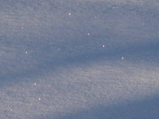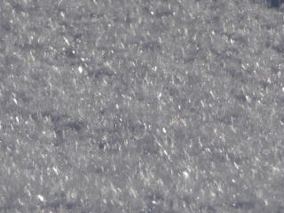 気温の下がった朝、雪の表面がキラキラと光ります