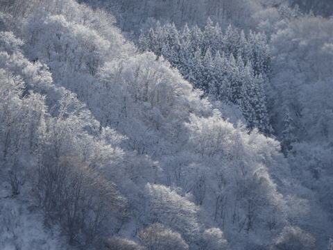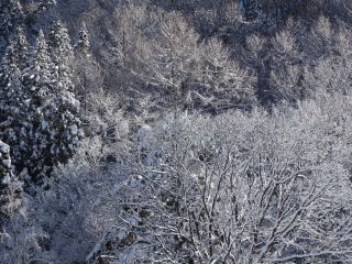 きれいに晴れた朝、木々についた雪がきれいでした
